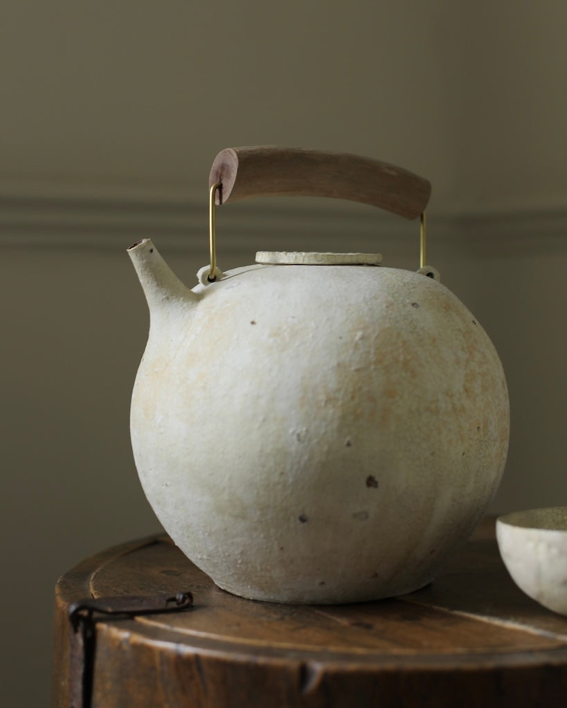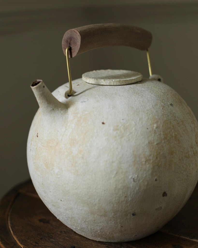 A precious teapot hand thrown by artist Yoko Ozawa that combines simple form with an exceptionally intricate surface. She uses clay from South Australia and makes her glaze with yellow box ash (eucalyptus) from her own fireplace. The natural crackle glaze creates a tangible, organic texture that enhances the characteristics of the forms that she skilfully makes. This is a great example of Ozawa’s flair for creating harmonious ceramics that explore the relationship between perfection and imperfection.