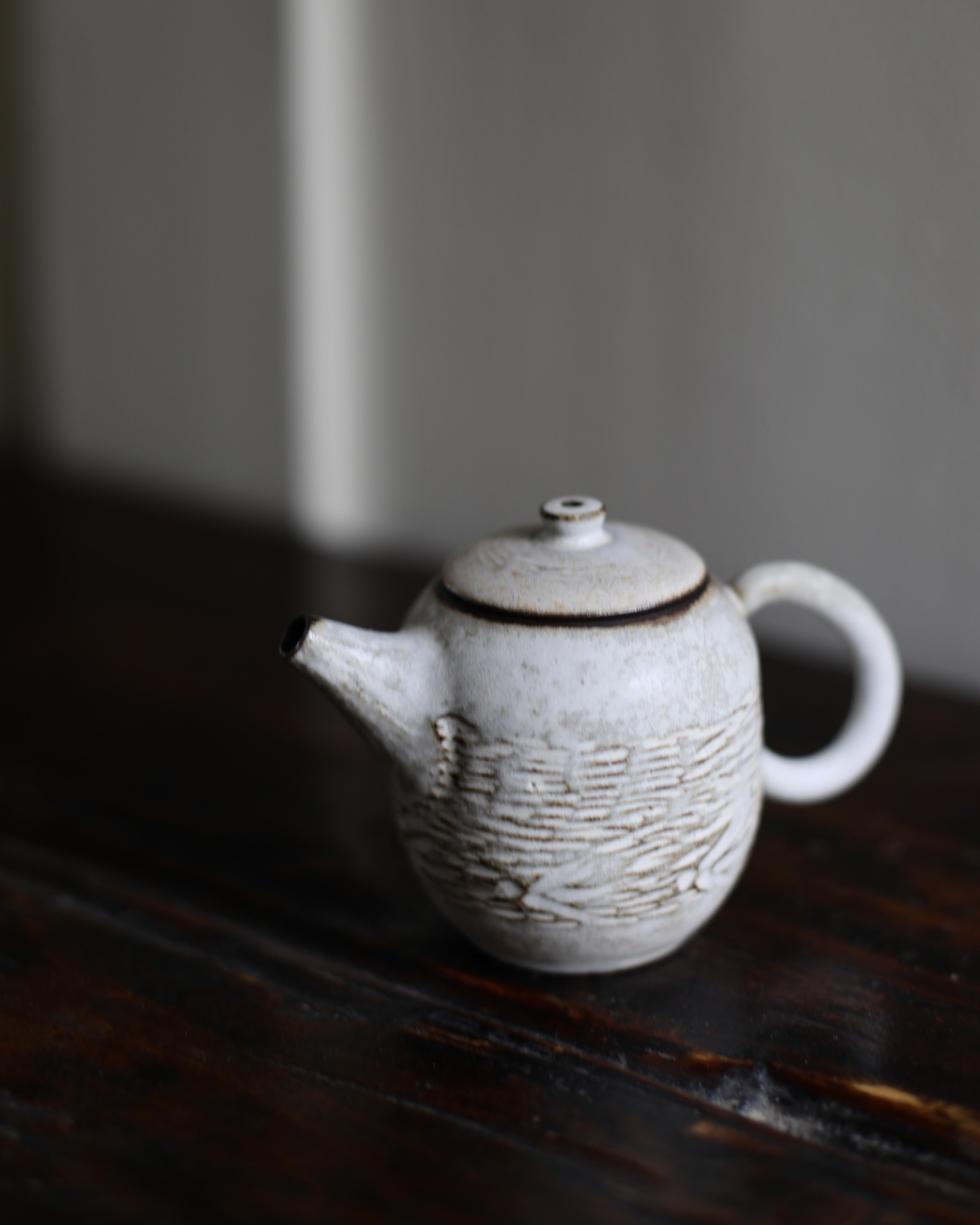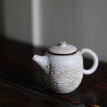 With their understated elegance, each unique teapot of Wang’s features a harmonious merging of elements; wide and petite bodies, small and delicate spouts. The wide bodies of her teapots are gentle and soft, their elegant curves evoking a sense of tranquility. The small spouts, subtle and refined, provide a counterpoint to the generous bodies. This juxtaposition of wide and small dimensions imbues her work with a sense of balance and grace. The interplay of these contrasting forms is where Wang’s work shines, creating visual harmony that is at once soothing and engaging.