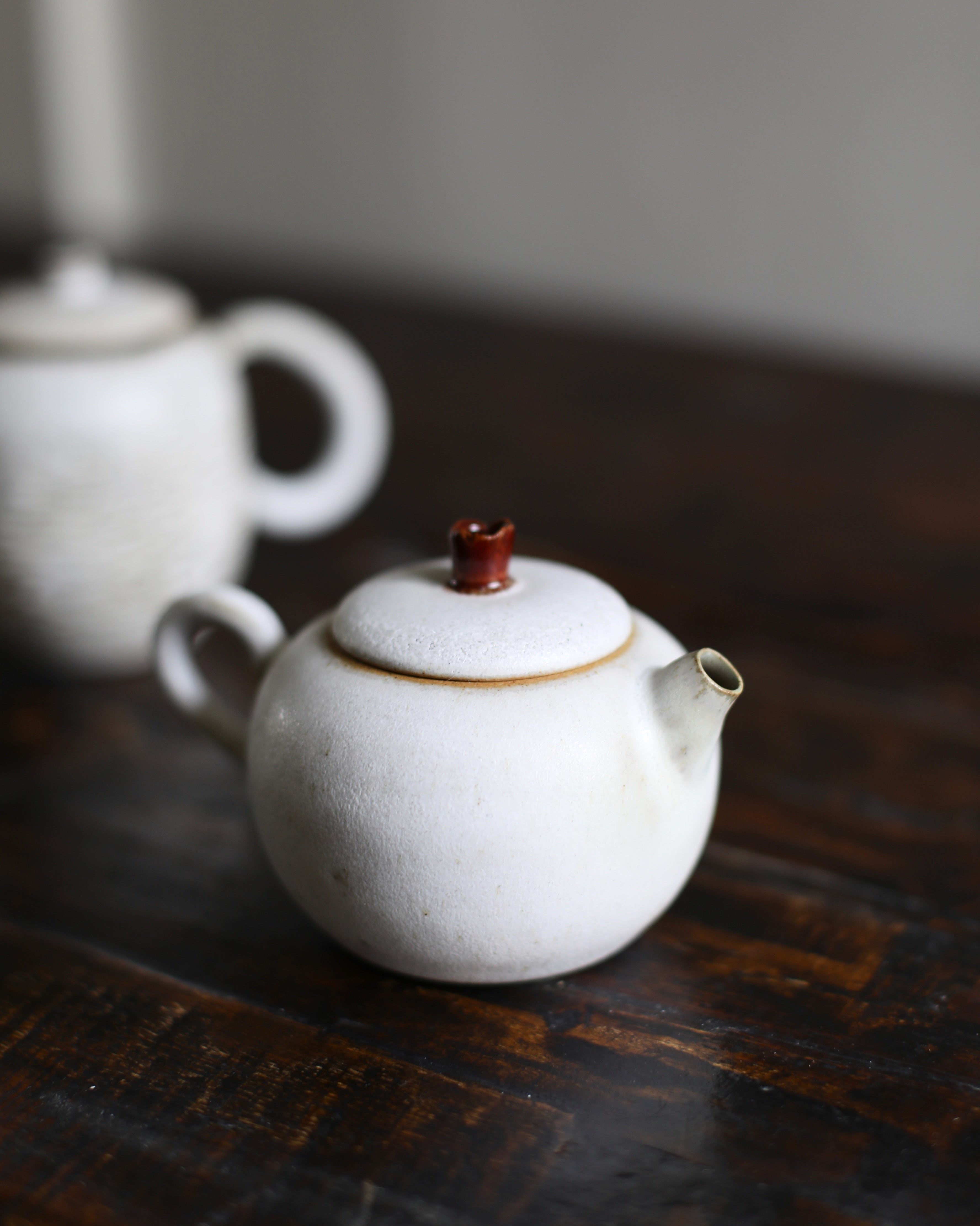 With their understated elegance, each unique teapot of Wang’s features a harmonious merging of elements; wide and petite bodies, small and delicate spouts. The wide bodies of her teapots are gentle and soft, their elegant curves evoking a sense of tranquility. The small spouts, subtle and refined, provide a counterpoint to the generous bodies. This juxtaposition of wide and small dimensions imbues her work with a sense of balance and grace. The interplay of these contrasting forms is where Wang’s work shines, creating visual harmony that is at once soothing and engaging.