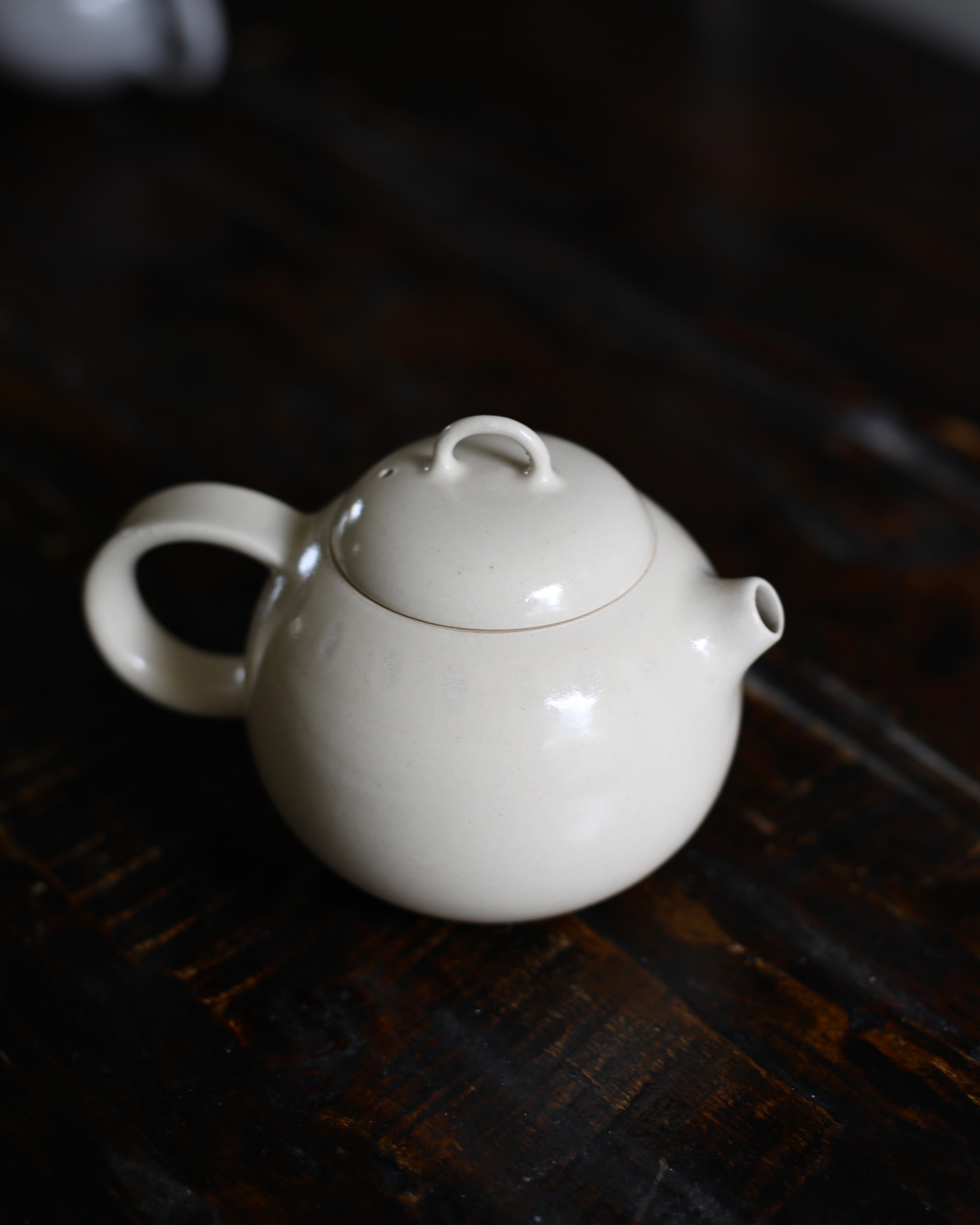 With their understated elegance, each unique teapot of Wang’s features a harmonious merging of elements; wide and petite bodies, small and delicate spouts. The wide bodies of her teapots are gentle and soft, their elegant curves evoking a sense of tranquility. The small spouts, subtle and refined, provide a counterpoint to the generous bodies. This juxtaposition of wide and small dimensions imbues her work with a sense of balance and grace. The interplay of these contrasting forms is where Wang’s work shines, creating visual harmony that is at once soothing and engaging.