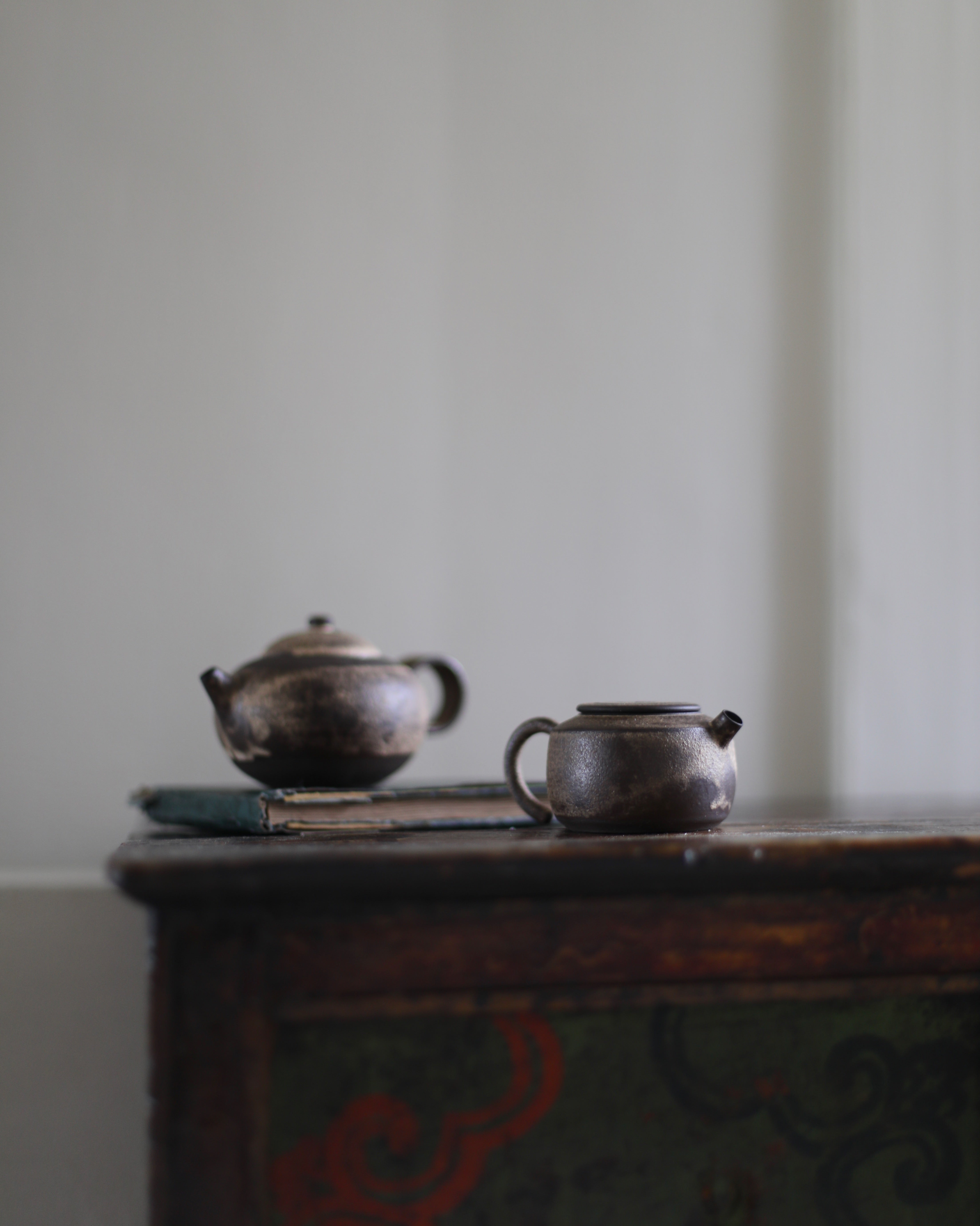 With their understated elegance, each unique teapot of Wang’s features a harmonious merging of elements; wide and petite bodies, small and delicate spouts. The wide bodies of her teapots are gentle and soft, their elegant curves evoking a sense of tranquility. The small spouts, subtle and refined, provide a counterpoint to the generous bodies. This juxtaposition of wide and small dimensions imbues her work with a sense of balance and grace. The interplay of these contrasting forms is where Wang’s work shines, creating visual harmony that is at once soothing and engaging.