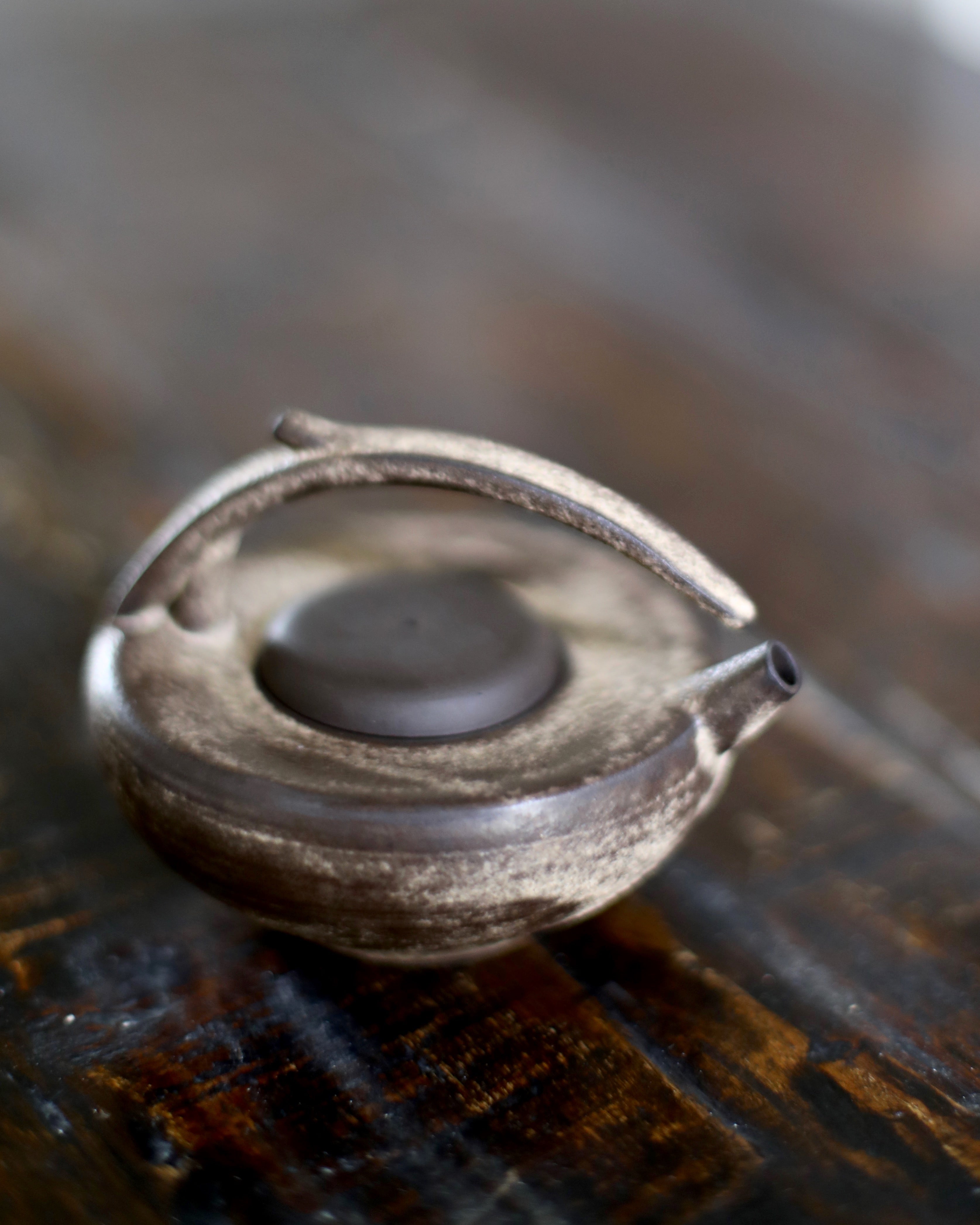 With their understated elegance, each unique teapot of Wang’s features a harmonious merging of elements; wide and petite bodies, small and delicate spouts. The wide bodies of her teapots are gentle and soft, their elegant curves evoking a sense of tranquility. The small spouts, subtle and refined, provide a counterpoint to the generous bodies. This juxtaposition of wide and small dimensions imbues her work with a sense of balance and grace. The interplay of these contrasting forms is where Wang’s work shines, creating visual harmony that is at once soothing and engaging.