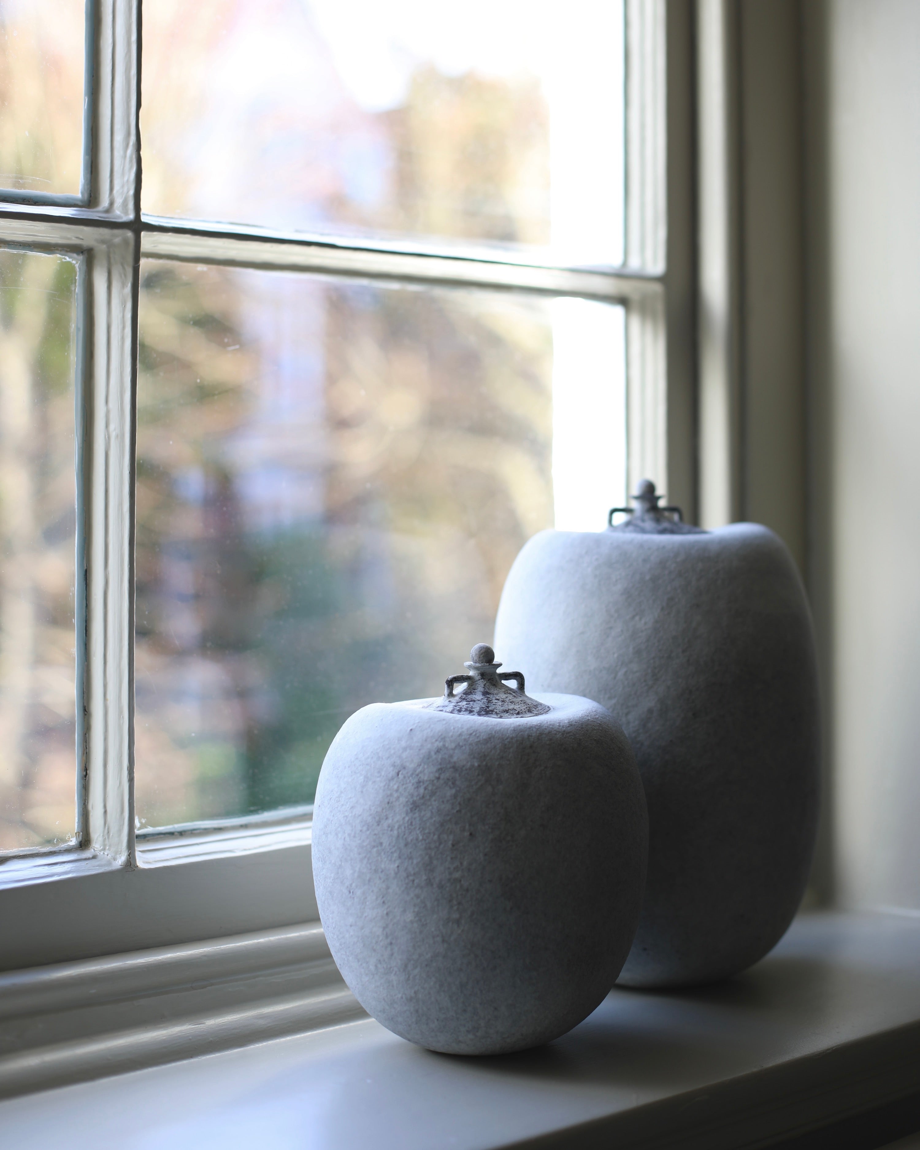 Her earthy, brutalist body of work observes nature, using skilful hand building techniques, subtle glazes and electric kiln firing to express an interpretation of her surrounding landscape. She has a desire to express the quiet poetic moments of observation in her ceramics, breathing the smell of the earth, and listening to the grass swaying in the breeze.