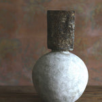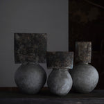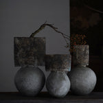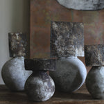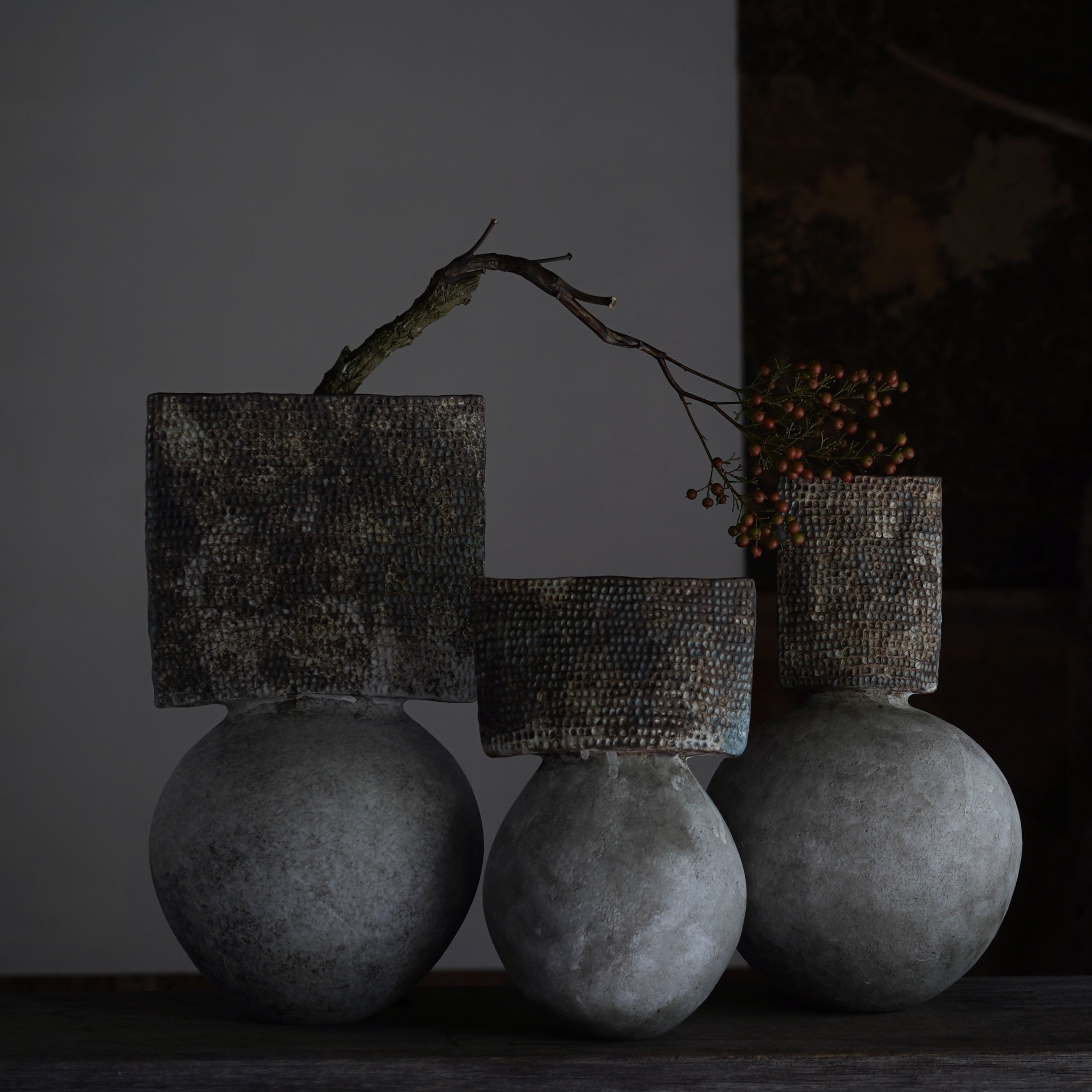 Bold brutalist forms meet the quiet elegance of Japanese craftsmanship. Each handmade ceramic piece is carefully carved in Yamada’s workshop, featuring a range of soft natural tones and a stone like texture that enhances their striking sculptural silhouettes. Sharp lines and oblong shapes contrast beautifully with delicate, organic details, while a rich matte finish and intricate mark-making reveal the energy of the artist’s process.