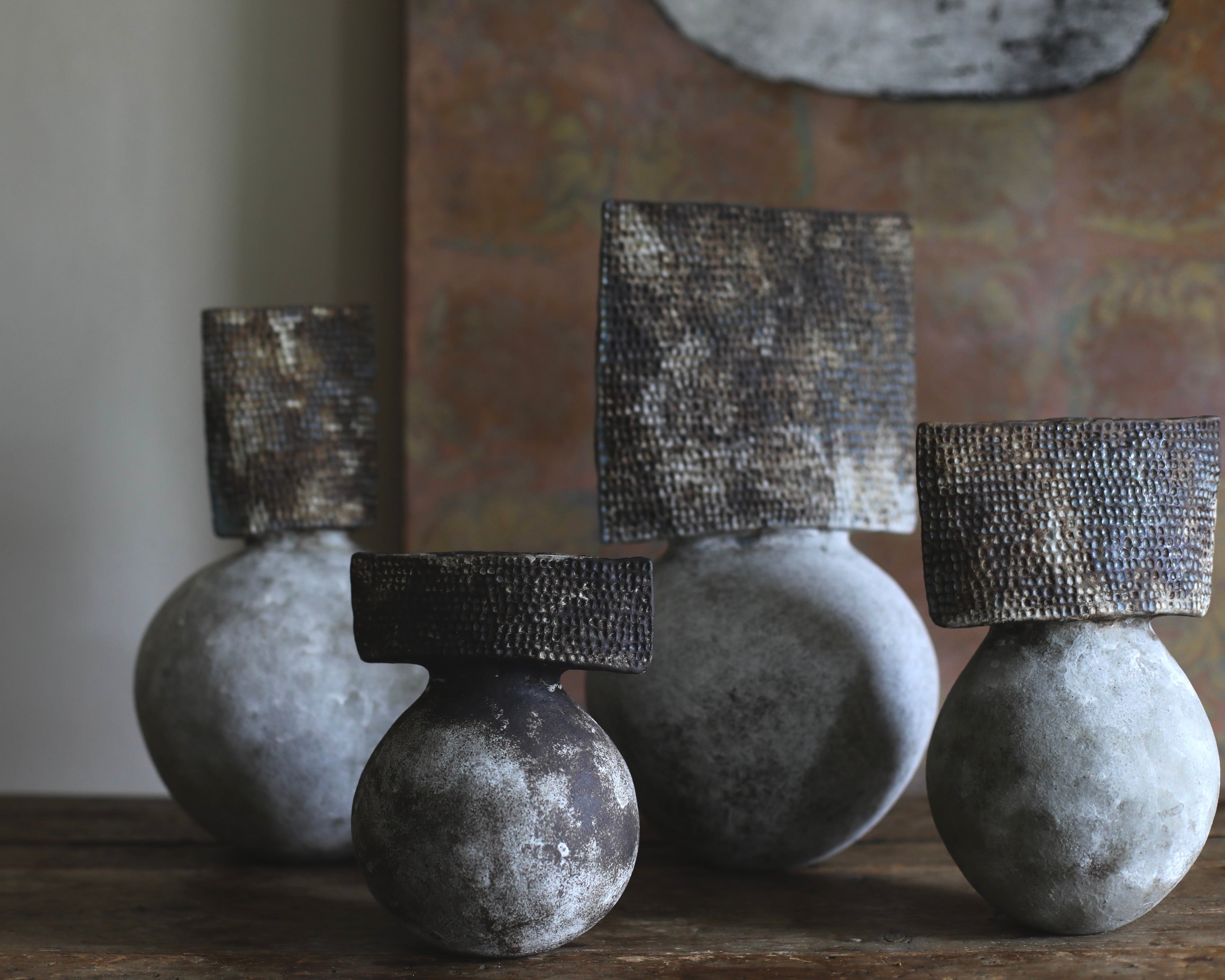 Her earthy, brutalist body of work observes nature, using skilful hand building techniques, subtle glazes and electric kiln firing to express an interpretation of her surrounding landscape. She has a desire to express the quiet poetic moments of observation in her ceramics, breathing the smell of the earth, and listening to the grass swaying in the breeze.
