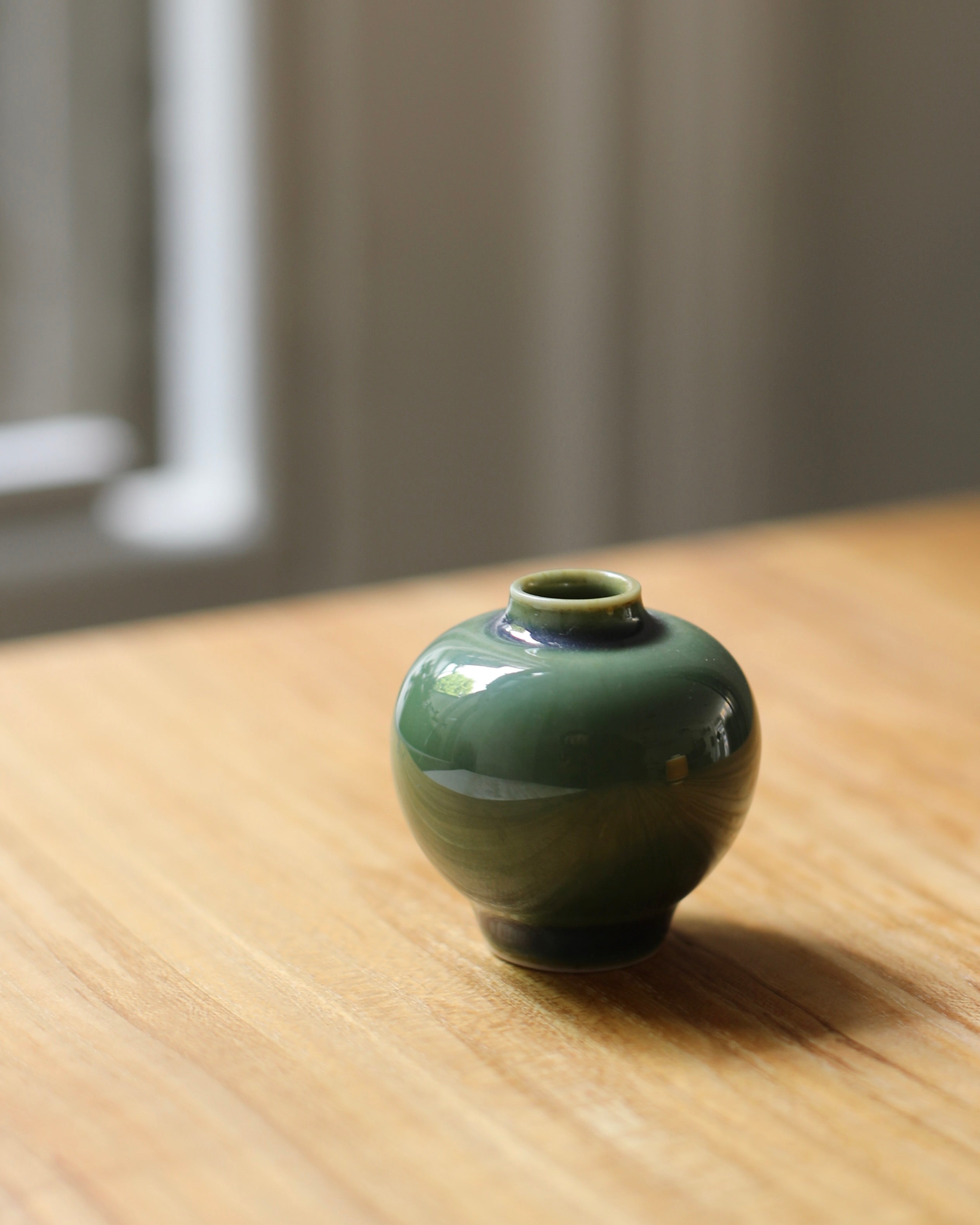 A beautiful pot, hand thrown on the wheel by Yuta Segawa, a Japanese artist who creates miniature pottery. Segawa challenges himself through working in miniature, pushing the boundaries of what the body can make on a small scale. This miniature pot is impactful both as an individual piece and as a group.
