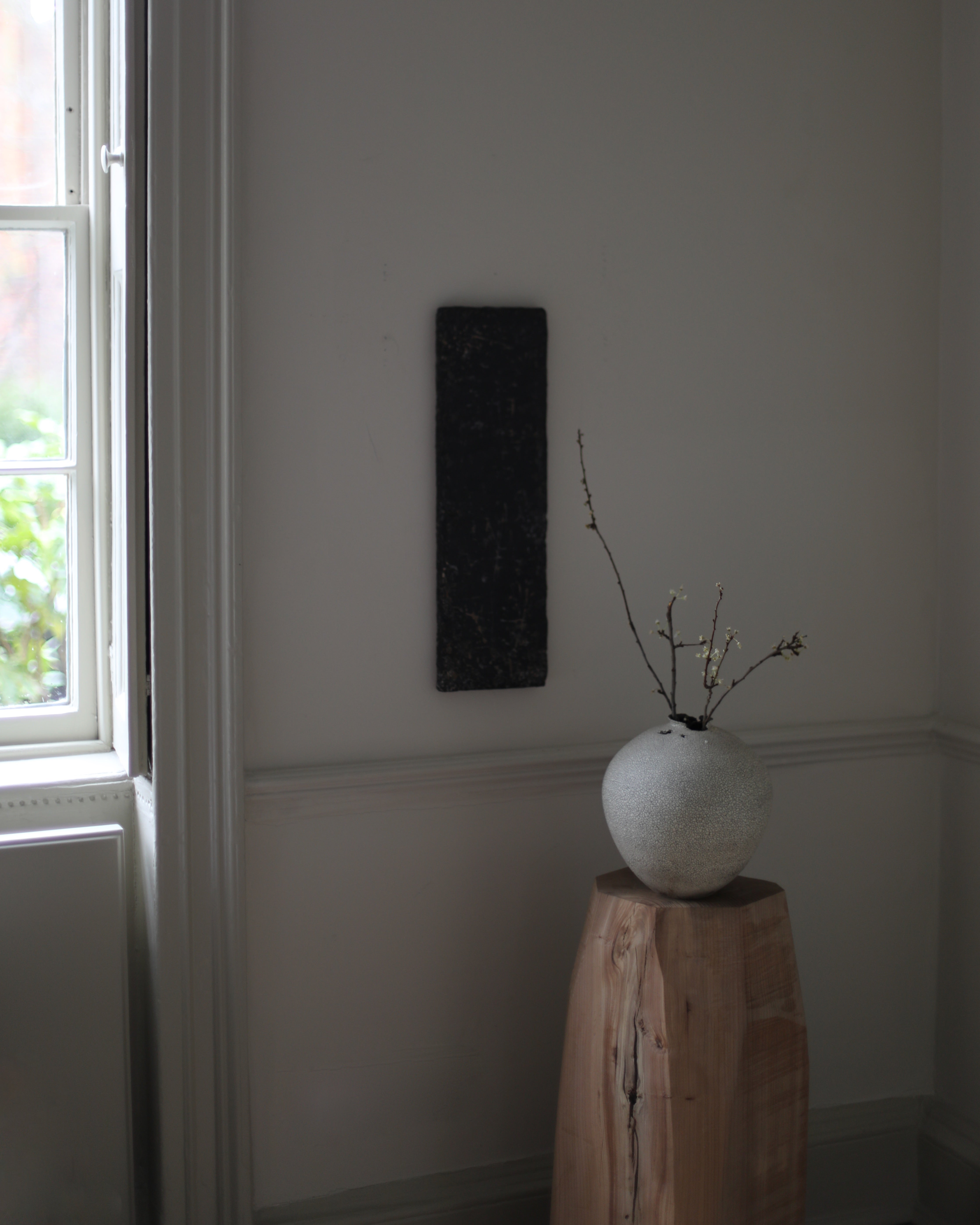 Created using hand-collected soil, this tactile and textural piece mirrors natural and organic processes. Scratching, shaving, polishing and spreading, Suzuki is influenced by traditional Japanese plastering techniques to create physically small yet powerful abstract works.